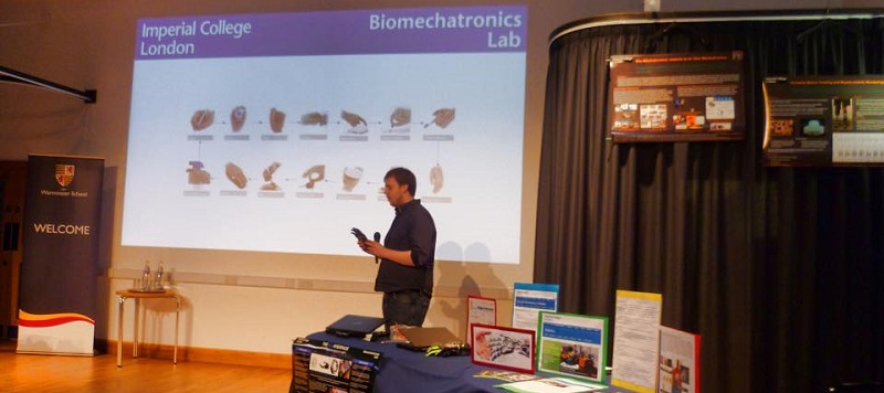 As part of the talk, Samuel gave a presentation on the latest developments in creating customised forms of prosthetic control, a vital aspect of BioMechatronic prosthetics.  As part of the lecture, Samuel answered questions during the breaks and demonstrated a robotic hand that responds to sound signals from the biceps and triceps muscles, allowing members of the audience to try it out.