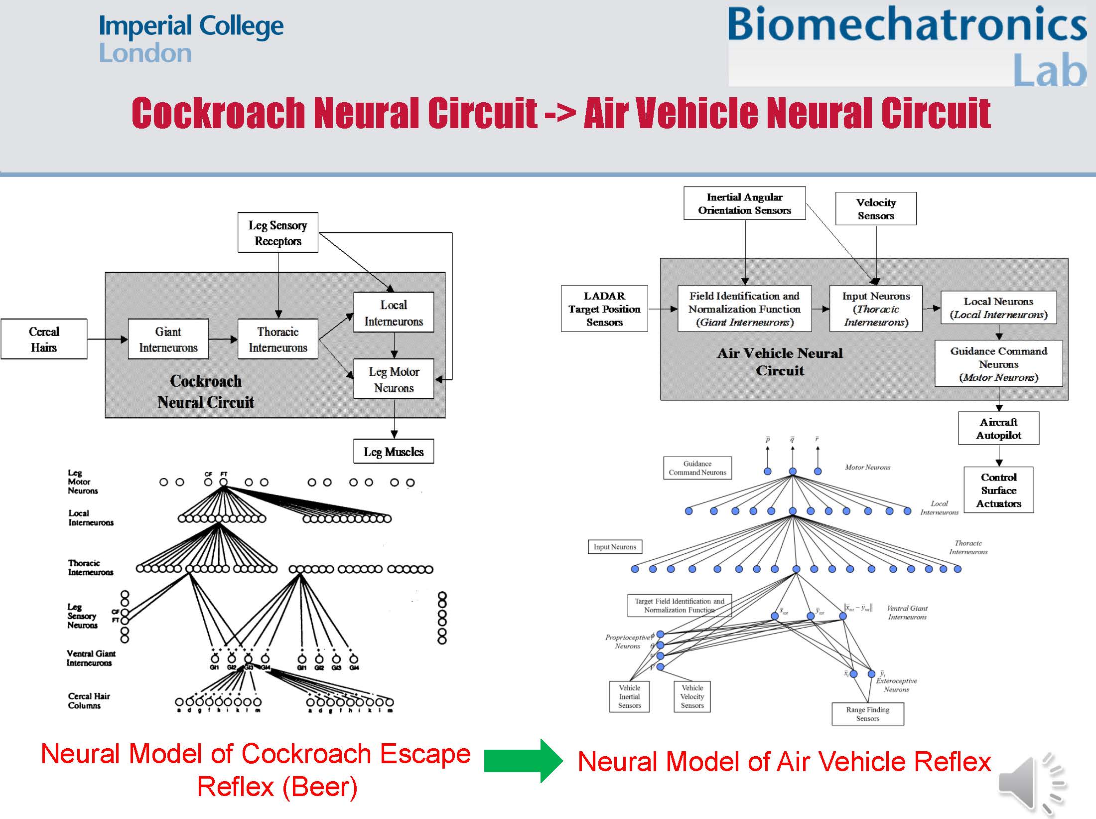 Animals must integrate large amounts of sensor information to orient movements, often in milliseconds, to survive. Identical directives are faced by autonomous vehicles; particularly rapid assimilation of surroundings and real-time control. Drawing upon biological studies of neural organization of the cockroach escape response, our laboratory has designed a biologically-inspired evasion/orientation reflex for autonomous vehicles, and tested it in application to autonomous aircraft. Future work will involve biological studies on insects, as well as expanding system development to several platforms including manned and unmanned air vehicles, and autonomous ground vehicles. In the longer term, this work is envisioned to provide a foundation for sets of reflexes for all manner of behavior for autonomous vehicles.